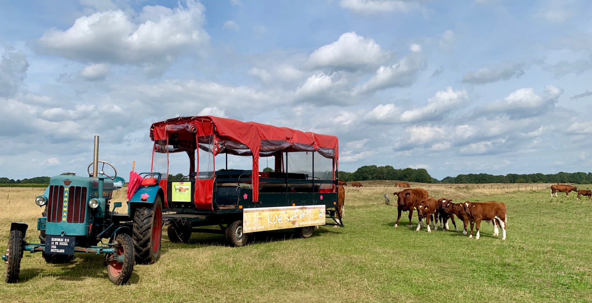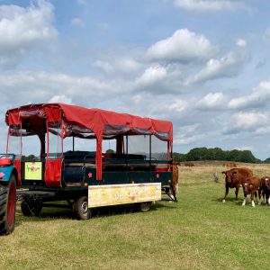 En nu hoor ik je nu denken, een Koe Safari?! Jazeker bij Erve Vechtdal in Ommen ga je echt op safari tussen de koeien. Deze Brandrode koeien, een zeldzaam oer-Hollands ras, leven in een kudde in een natuurgebied aan de Vecht. Je wordt meegenomen in de safariwagen op een reis door het Vechtdal en je kunt de kudde in haar natuurlijke omgeving bewonderen. Bezoekers worden geïnformeerd over de schoonheid van het stroomgebied van de Vecht, de agrarische sector die samenwerkt met de natuur en de ontwikkelingen daarin. Het kuddegedrag, de familieverbanden en de rangorde binnen de kudde wordt verbonden aan onze eigen samenleving. Een herkenbare en unieke ervaring voor iedereen. Vol passie en gedrevenheid wordt de liefde voor het Brandrode rund en het Vechtdal overgebracht op de bezoekers.